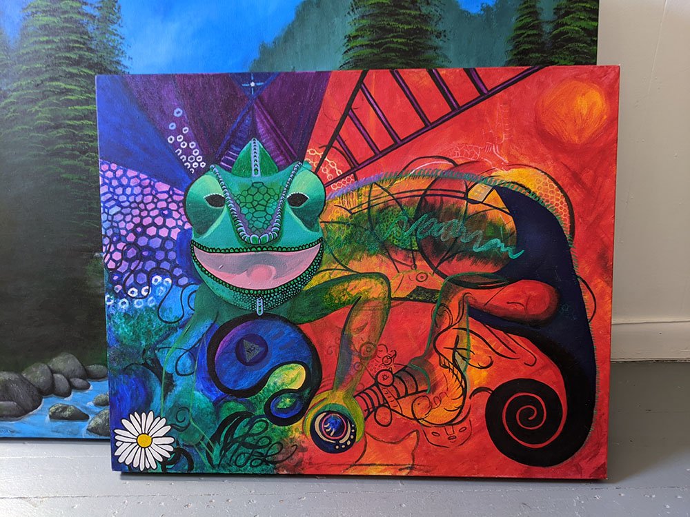 A C R Y L I C P A I N T I N G S ▾▴▾ Skull And Moss Gallery ▴▾▴⟵ Scroll or Swipe ⟶ Visions Deer of LIfe The Eight-Legged Octopus Dragon Heart (Trust The Process) Transformeleon